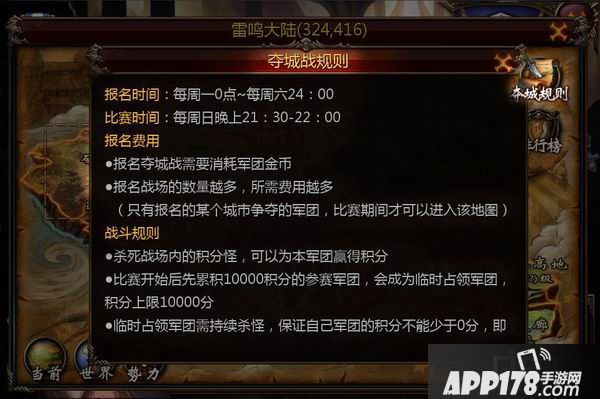 ·只有报名参与城市争夺的军团,才可在比赛期间进入该地图。