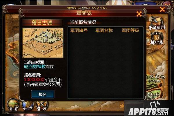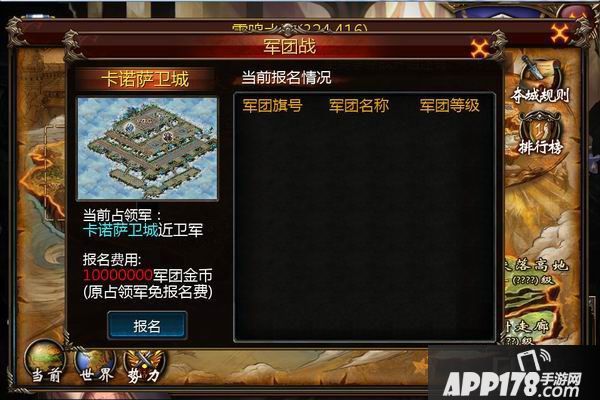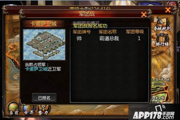 此时就算报名成功了。军团成员们只需等到争夺战开始时进入战场地图,按照军团战规则进行城市争夺即可。