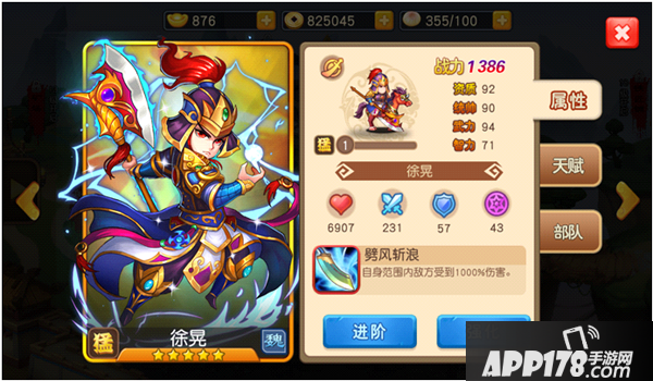 本作中,徐晃的初始战斗力达到了1386点,资质达到了92点,其统帅与武力均超过90点,成为了一位高血高攻的武将。