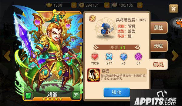 刘备所带领的兵种则是克制骑兵的步兵,综合以上的内容来看,刘备是一个属于耐打抗揍能够带队的英雄。在战场上的主要目的还是用来拖住对方主力,为己方攻击武将赢得时间