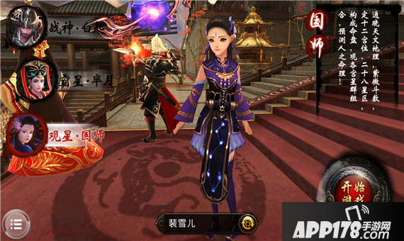 国师通晓天文地理,紫微斗数,定十二宫位,二十八星区,构成命盘,观各宫星群组合,预测人之命理!别看国师外表只是个娇俏的小小少女,作为唐昧的亲传弟子,国师这一职业也继承了唐昧能够通过星象变迁而知晓世间动向并为己所用的能力,甚至有青出于蓝之势!国师拥有技能“月寒术”、“星辉术”和“七曜术”。在三个职业中,国师最为灵活,攻击力与攻击距离最远伤害也最为可观。同时,她也是三个职业中生命值最低、最为脆弱的一个。准确的释放技能并做好敌方的技能预判才是国师在这战国乱世的生存之道!