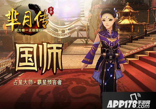 国师通晓天文地理,紫微斗数,能观各宫星群组合,预测人之命理。别看国师外表只是个娇俏的小小少女,作为唐昧的亲传弟子,国师这一职业也继承了唐昧能够通过星象变迁而知晓世间动向并为己所用的能力。在三个职业中,国师最为灵活,攻击力与攻击距离最远,伤害也最为可观。同时,她也是三个职业中生命值最低、最为脆弱的一个。准确的释放技能并做好敌方的技能预判才是国师在这战国乱世的生存之道!