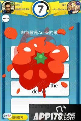 玩家被对方使用番茄道具后,屏幕上会飞来一个大大的番茄,啪叽一下刚好落在备选答案上,遮挡住三个或四个答案。被使用道具的玩家用手指其实是可以擦掉屏幕上的番茄污渍的,虽然在道具释放期间不太可能全部擦除,但我们可以挑拣重点的地方进行擦除,目的就是为了能够看到备选答案的真面目,这样我们就为自己争取了更多的时间读题和思考。