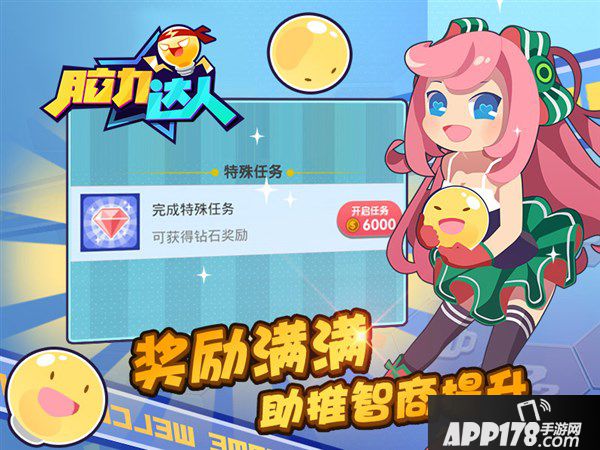 《脑力达人》的任务系统逗趣欢乐等你体验,每天完成几个简单的小任务,赚的奖励满满,钻石满满,智商飙升就是这么简单!