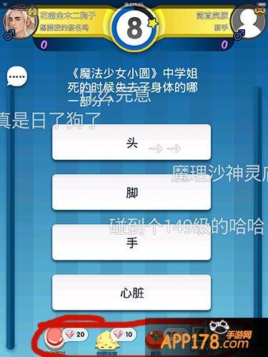而现在又如各位所示,到了20关以后会出现玩家们所擅长话题的第四个话题内的题目——关于动漫的。从中可以看出小编的一些爱好(小编都没打码,不要吐槽小编的兴趣,小编可不宅)只要大家对自己的所擅长的话题非常热爱和了解的话,这么样是没什么问题的,不管增加什么东西,对各位来说都是没什么难度的吧,都可以轻松解决的吧(正可谓五大受损一步搞定)