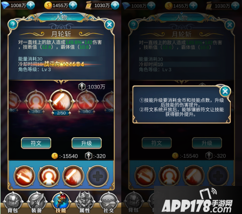 技能升级需要消耗技能点SP,而技能点的获得又是通过不断的完成任务来积累的。给技能升级可以带来更强大的威力、消耗更少的冷却时间,让你成为一个更狂拽酷帅叼炸天英雄,赢得帅哥美女钦佩的目光哟。每个职业的技能也都是完全不同的设计,有些单体输出,有些群体伤害,有些自身加成,有些敌方异常,总之,不同的搭配组合能够发挥出不同的威力,只要你把握时机,一定能成为这个世界这个时代的英雄,拯救出我们美丽的女神大人!!!