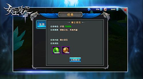 打开任务面板,玩家可以详细了解主线任务的等级、背景和内容,同时也能对NPC的任务交付、主线剧情有一个回顾。当然,最重要的任务奖励当然不可能少咯~《女王号令》的玩家们,快快接受任务踏上行程吧!
