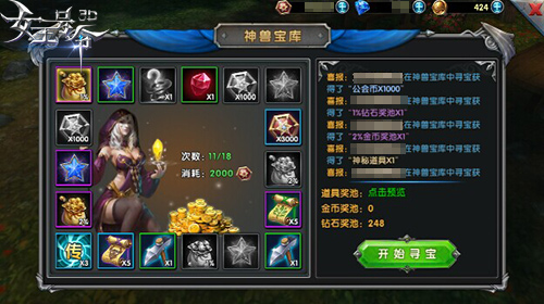 阿里巴巴只是偶然获得了四十大盗的开门口诀,便获得了推挤成山的金银财宝。而在《女王号令》当中,勇士们要想获得公会宝库之中的珍稀道具,就必须通过消耗公会币来进行寻宝。每天都可以获得一定的寻宝次数,而每一次寻宝都必定能够有所收获!