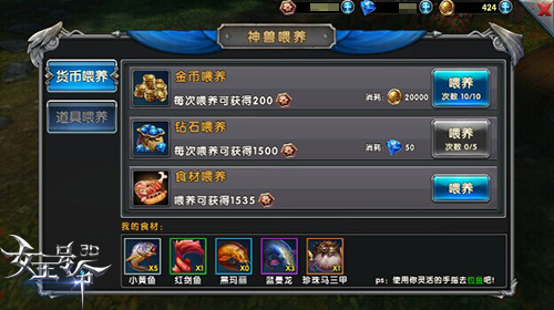 在《女王号令》之中,公会宝库其实归属于降临的公会神兽。而勇士们要想获得更丰厚的奖励,就要好好伺候公会神兽。通过消耗金币、钻石以及各种道具对公会神兽进行喂养不仅能够获得相应的奖励,喂养神兽的这些财物道具也会全数进入到公会宝库之中,成为宝库奖励的一部分。