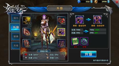 如果说装备强化是原基础量变,那么装备升级就是质变了。玩家可以通过失落神庙副本获得升级装备所需的图纸,最妙的是,升级后装备的强化等级还是保持不变的,所以尽管放心大胆地升!又及,爱美的女性玩家们,注意到右下角的“集齐套装可更换外观”了吗?