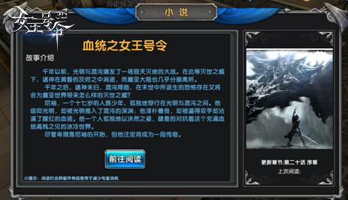 《女王号令》手游的制作是基于其本身极庞大的神魔背景建立起来的,赛亚大陆背后的故事多如繁星。想不想试试看边玩游戏边看小说的体验?少年,孤独,信仰;鲜血,卑微,传奇——游戏同名小说《血统·女王号令》长篇连载震撼上线!