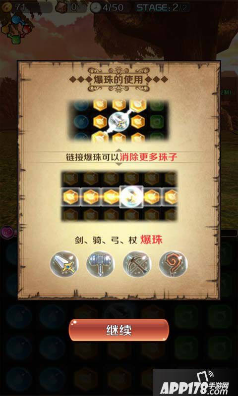 而爆珠,在诺文尼亚战斗中也起了相当关键性的作用,玩家通过连接爆珠可以触发更多珠子的伤害。所以你需要了解不同类型爆珠所触发的作用。(剑的作用是消除一行排,骑得作用是消除一列,弓的作用是消除一斜排,杖的作用是消除周边珠子)