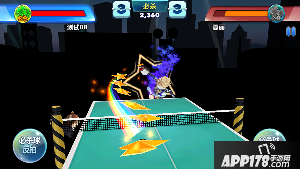 它的操作非常简单,玩家只需通过简单的触屏击球方式,便可轻松完成操控。需注意对方的左右球路,相应按左右两边的正拍和反拍键,每次击打都需要掌握一定的节奏。需要提醒玩家们的是,《乒乓大魔王》是非常考验眼力、反应、行动力、手速的。神游状态就会容易失分哦!~当熟悉了游戏操作,普通的打法已经无法满足,那就需要更高阶的玩法,看准时机,蓄能量,来一招一击必杀,绝对会让对手措手不及呢!