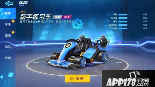 新手练习车是开始就送的赛车,在各项属性上非常一致。这种车就是拿来练习技术,因为没有速度优势,所以想要跑更快就需要更高的漂移技巧来弥补速度的不足。