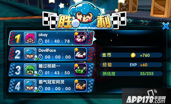 玩家可获得金币、经验和赛车熟练度的奖励。