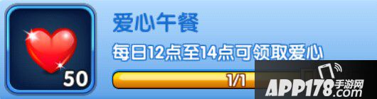 爱心午餐:每日12点至14点可领取爱心,爱心50点