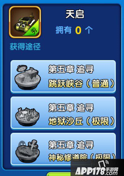 a.通过天启券合成,需要120个。天启券获得关卡:第五章追寻-跳跃峡谷(普通),第五章追寻-地狱沙丘(极限),第五章追寻-神秘修道院(极限)。