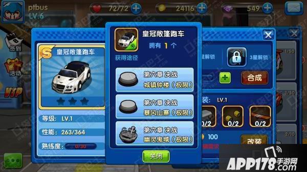 1.通过皇冠敞篷跑车券合成,皇冠敞篷跑车券需要80个,皇冠敞篷跑车券获得关卡:第六章决战-城镇钟楼(极限)第六章决战-暴风山寨(极限),第六章决战-幽灵鬼域(极限)