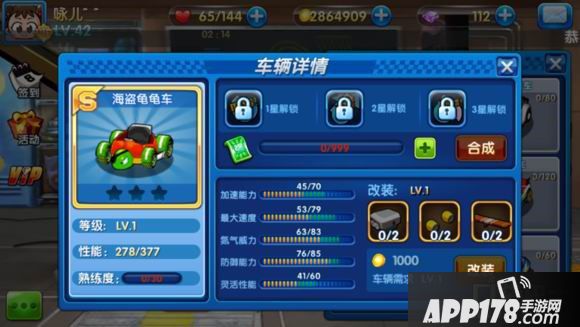 2、目前防御能力最大的是海盗龟龟车,数值是85,然并卵。