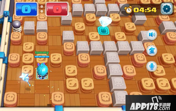 该地图大致分为5个区域,要注意中心区域不断出现的白色钻石,毕竟是钻石多少定胜负,如果是1V1就要注意多堵住对手,确保中心钻石都是自己的,因为地图其他类型宝石较少,最好可以把对手一直堵在一个正方形四角区域里,自己就稳赢了。如果是多人的对战,就要有和队友配合的意识,多救队友,利用敌方失误炸自己被队友扎破泡泡迅速抢夺掉落的宝石,有时候必要时可以把队友和对手都堵住,来获得最大的宝石优势,(看好时机慎重,有时候弄不好就赔了夫人又折兵了)