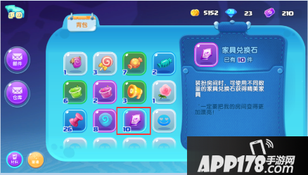 装扮房间时,可使用不同数量的家具兑换石获得精美家具。