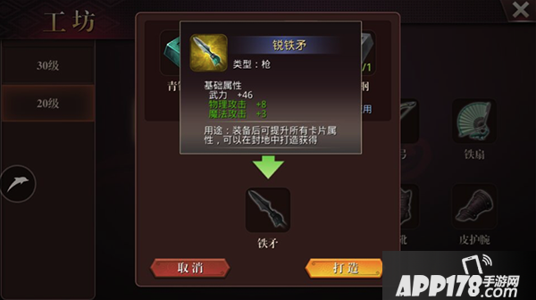 打造材料:青铜锭及轻皮,使用百斩钢可以提高打造品质(锐铁矛)