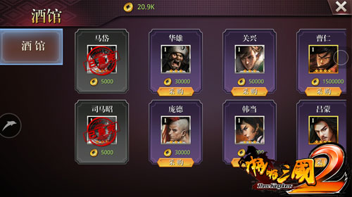 在酒馆中,玩家可以通过消费铜币随机招募到强力的武将。当然武将星级越高也就越贵,4星武将需要150万铜币。千万不要以为酒馆就是个变相的武将商店呦~酒馆每升级一次,还会赠送给玩家一次免费的卡牌4选1机会,可以招募到更强力的武将。