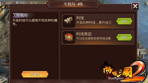 军机坊可以看成是《啪啪三国2》中的科技研究所,里面不仅能够通过研究科技增强兵种的属性,还设有科技商店,可以购买科技点数。