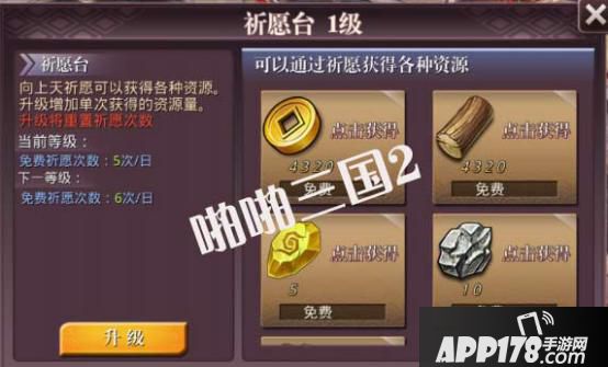 升级祈愿台可是会增加祈愿的次数的,再多的资源就需要消耗钻石来获得了,但是消耗的数量也是比较少的,而资源却是只多不少;我们从不做亏本的生意,但是这次我们要让玩家占尽便宜!想知道怎么来占便宜吗?那就来祈愿台祈祷吧!