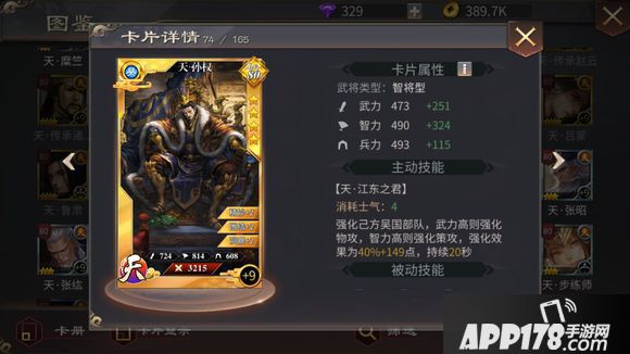 技能消耗士气4点,强化己方吴国部队,武力高则强化物攻,智力高则强化策攻,强化效果为40%+149点,持续20秒。