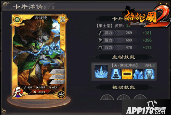 庞统,刘备帐下重要谋士,与诸葛亮同拜为军师中郎将。在游戏中,庞统同为策士型武将,大招“寒冰冲击”可召唤冰刺从天而降,攻击距离最近的敌方部队,造成法术伤害。与刘备、张飞等武将联协,可产生额外加成。