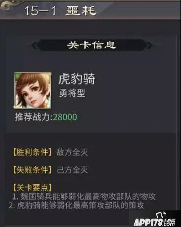 不管是混骑还是魏骑又或者国宝级别的群骑来说,都是物理为主,所以这关的关键点是两个会弱化物攻的魏国骑兵。首先我们来看下对手的技能释放顺序: