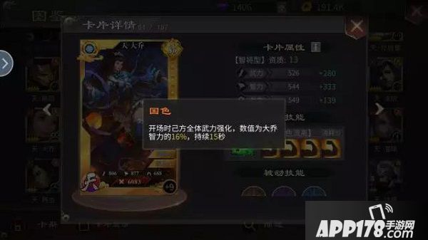 然后再看大乔50%+154点的物攻提升在辅助中稳占一流,还有40%+79的物防提升增加保命能力,被动提供开场己方全体武力强化为大乔16%智力,15s 。为斩击武将起手秒人提供了便利,开场期的大乔技能可重叠产生强力效果,然后最重要的地方到了技能消耗0!目标死亡前持续强化!2s延迟大部分情况无伤大雅,甚至有时还为战术提供便利。入手容易(6元新手礼包你值得拥有)被动提升稍有难度,但好歹酒馆有产,45等级招募及时不时的吴国招募可用。