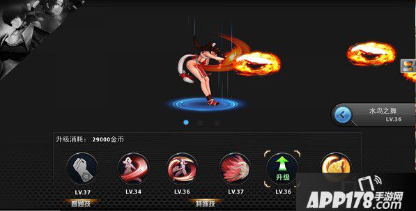 以上就是APP178手游小编为您带来的拳皇97OL不知火舞技能特点 施放连招顺序讲解。更多精彩内容请继续关注APP178手游拳皇97OL专区。