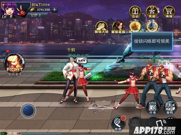 进游戏,选择好初始格斗家,我们跟着主线走就行,前期系统比较强势,会严格控制玩家的每个行动,我们只需按要求点击完成任务即可,这样我们会发现升级并解锁了更多的玩法内容。