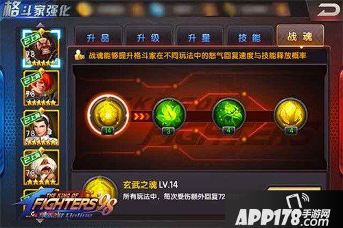 玄武之魂:所有玩法中,每次受到伤害额外获得怒气(格斗家紫色品级解锁);