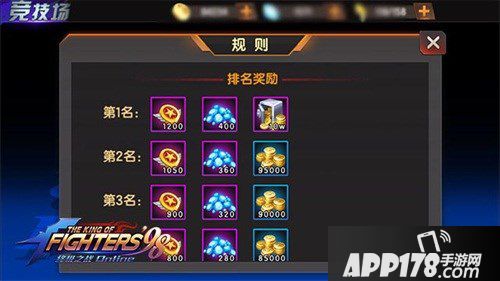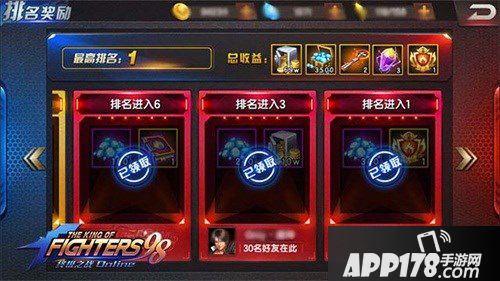 《拳皇98终极之战OL》每位格斗家都有2个宿命,它们分别需要秘籍之魂、徽章之魂来解锁。秘籍之魂与徽章之魂的稀有程度相信不用说大家都懂的。很难很难。在接触到竞技场的时候,除了能与其他玩家一较高下获得荣誉币来兑换自己奖励之外,大家都一定注意到了竞技场排位奖励。只要你最高排名达到一定程度,就会获得一次丰厚的奖励。当你最高一次的排位达到第一名。你将累计获得69万金币,3500钻石,2把装备宝箱钥匙,觉醒石3颗,烈焰秘籍1本、烈焰徽章1枚。