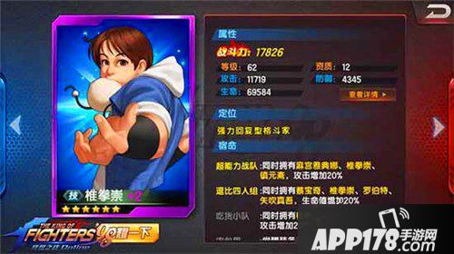 以上四位格斗家加上本来就有的草薙京和首次十连抽所得到的英雄正好凑齐六名,别看13资质的格斗家少感觉PK起来很吃亏,但是真正培养起来有一些阵型不好的组合还真就PK不过你,例如对面没有抽到猴子呢,你的双奶配合两个蝮蛇魂的续航能力打消耗战绝对稳赢的。