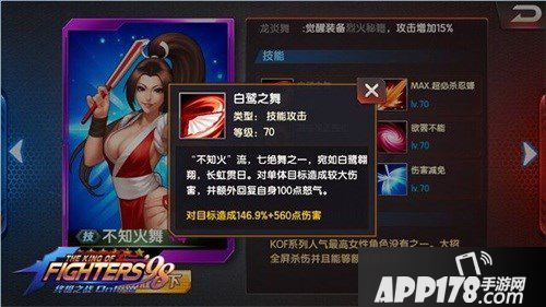 现在来看看游戏中的不知火舞的盘点吧,这个英雄也是小编获得的第一个高级格斗家。那么这个格斗家是否强力呢?现在就和小编一起来看看吧。