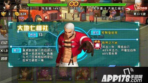 《拳皇98终极之战OL》中,除了资质14的BOSS和K’之外,资质13中三围成长最高的就数里地狱乐队的格斗家,大地七枷社属于前排肉盾,其优秀的抗击打能力,和源源不断的减伤能力绝对是让头疼的存在。今天为大家分析的就是大蛇八杰集之一大地七枷社。
