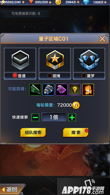 探索量子信息需要花费少量金币,每日系统也会赠送一定的免费探索次数,每日凌晨3:00重置。量子信标分为3个区域,每个区域有3个等级,普通,困难,噩梦。您可组队进行探索也可自己进行探索。组队可将消息发送到世界聊天和军团3个或者2个战队一起挑战,胜算更大哦。