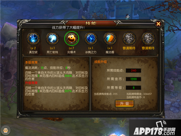 炎爆术,在指定区域召唤天雷之火,数秒后,无数火球降临,对指定区域怪物造成大量伤害