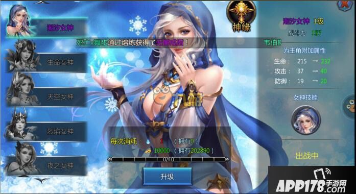 奇迹战神推出的女神系统,对于玩家提升战斗力是一个很有效的途径,不同的女神在参与战斗所发挥的作用也是不一样的,等级越高的女神输出的战斗力就越强,那么要如何培养呢?怎么样升级?那么接下来APP178手游小编就来和大家详细介绍一下女神系统,让各位玩家能够详细的了解这个技能哦!