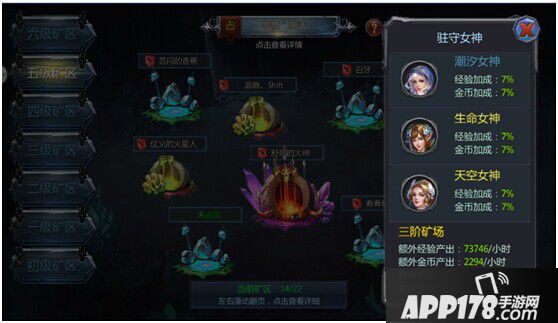 对啦,矿洞有了,还有个小细节不要忘记,那就是矿洞中的“女神驻守”,通过女神驻守可以获得额外的经验和金币加成。
