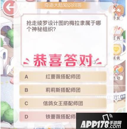 很多玩家都在答题奇迹暖暖奇迹大陆知识问答,但是狠多问题还是相当难的,毕竟谁都不是一定会去记忆那些问题,奇迹暖暖抢走绫罗设计图的梅拉属于哪个神秘组织?下面给你答案。