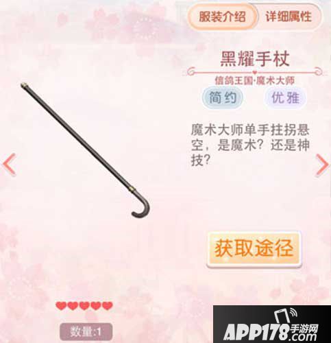 木质手杖,通体乌黑,对于魔术师来说,是不可或缺的道具,既象征了“魔术师”的身份,又可以用来作为暗藏魔术玄机的道具。真正震撼人心的魔术,无需太多套路,那若惊鸿一瞥般蛊惑人心的魔法在指尖律动,“魔术大师”套装英姿卓绝,也可谓是一定意义上的职业装了。