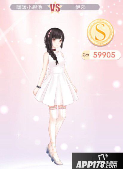 发型:窈窕淑女黑(属性优雅清纯;谜之屋首抽获得);连衣裙:鸢尾短裙(属性可爱清纯;服装店3100金币购买)