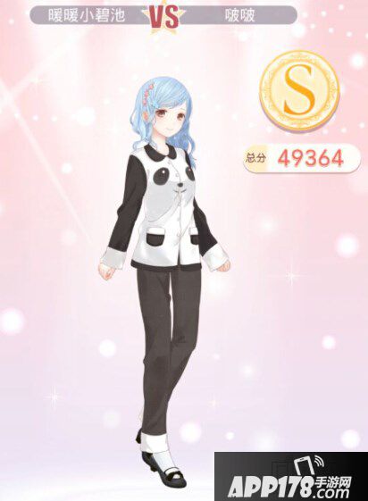 发型:冰境幽语(属性可爱清纯;服装店3680金币购买);上衣:熊猫睡衣·上装(设计图制作)