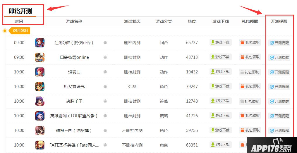 如果,奇迹破坏神在即将开测表中,玩家还可以点击"开测提醒",避免忘记了游戏开测时间,抢先进入游戏,快人一步。