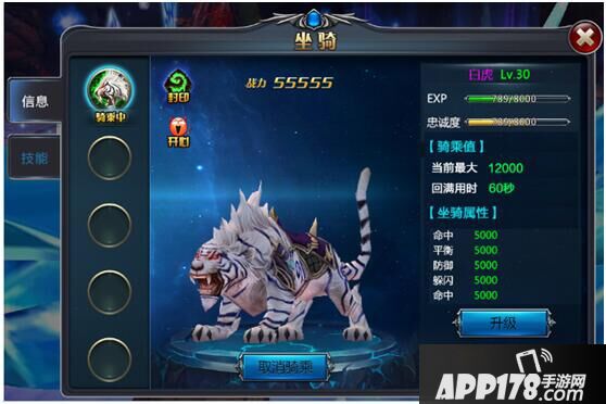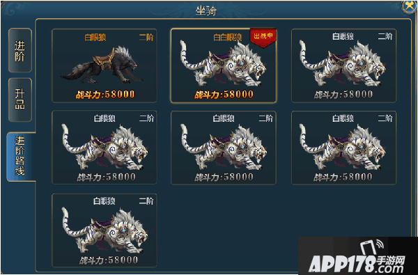坐骑培养是给坐骑进行升品的提升,每只坐骑一共可以提升4次品质,白——绿——蓝——紫——橙分别对应一阶、二阶、三阶、四阶和五阶,当培养经验值达到100%后坐骑会进入进化的阶段,坐骑进行品质提升,提升货可以增加大幅度的属性。